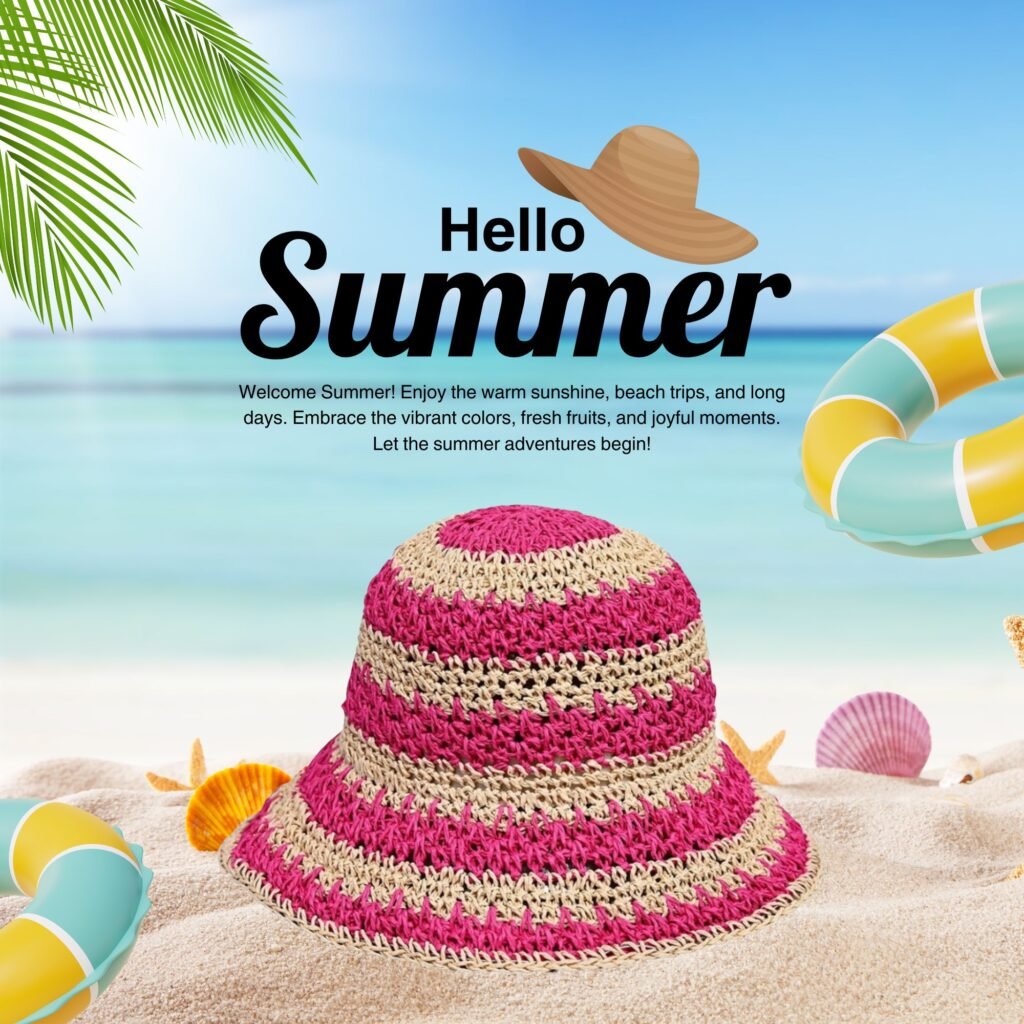 SS-2415 Hello Summer Embroidered Straw Tote Bag