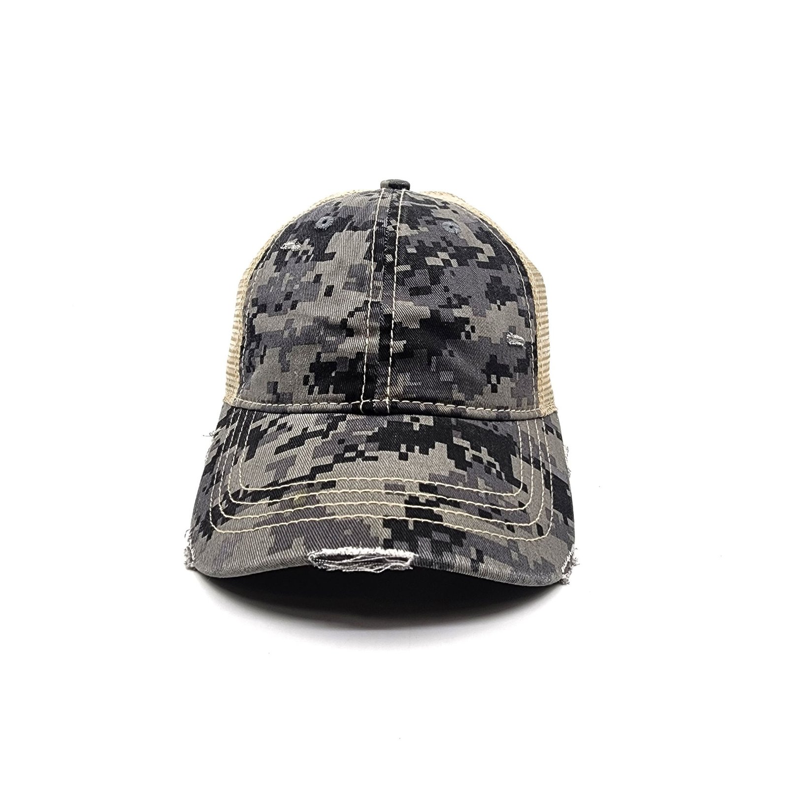 Pixel Camouflage Distressed Cotton Baseball Cap