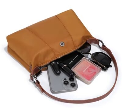 Lightweight Nylon Shoulder/Crossbody Bag with Flap Top & Zipper
