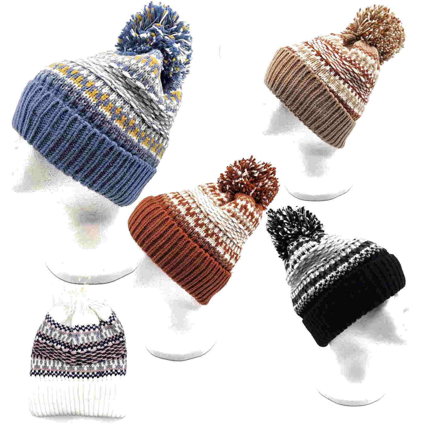 HZ-30012 Slip Stitch Warm Winter Beanie with Pom