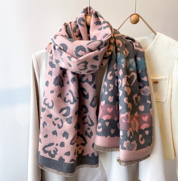Ultra Soft Heart Print Double Sided Warm Shawl Scarf