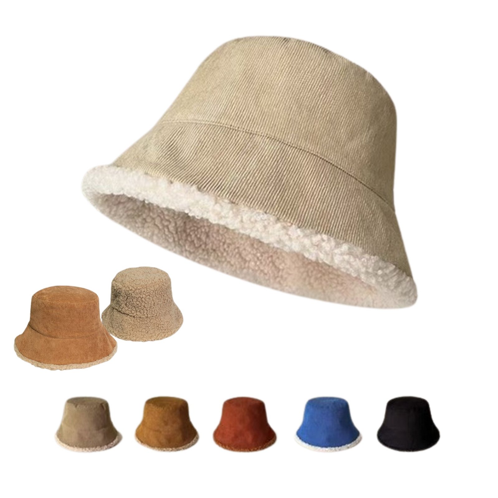 Fleece Reversible Corduroy Winter Warm Bucket Hat