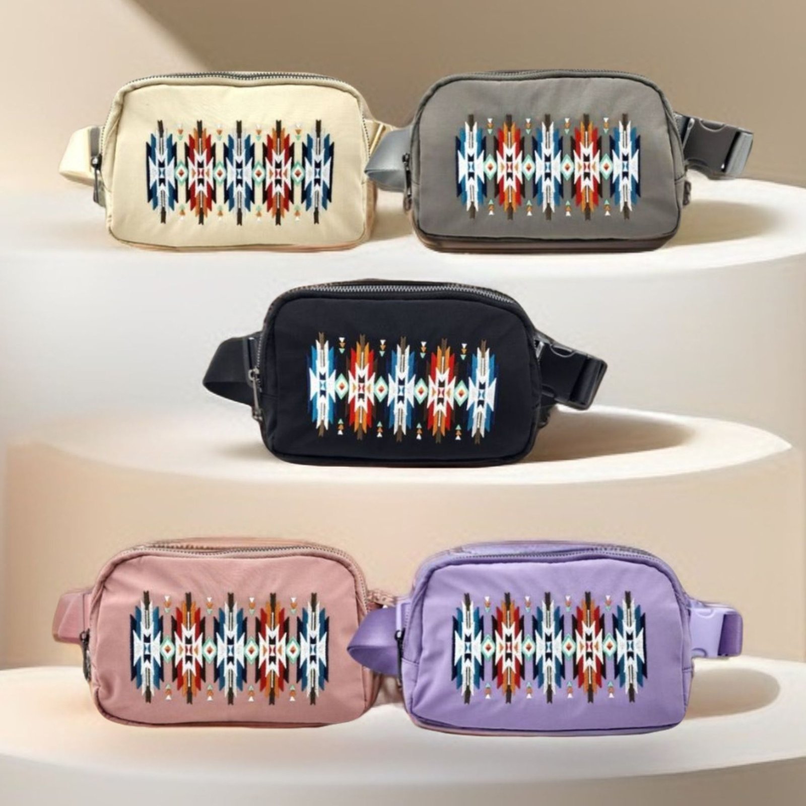 Aztec Pattern Embroidered Nylon Fanny Pack