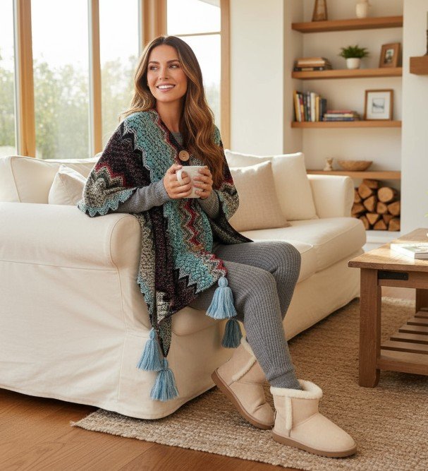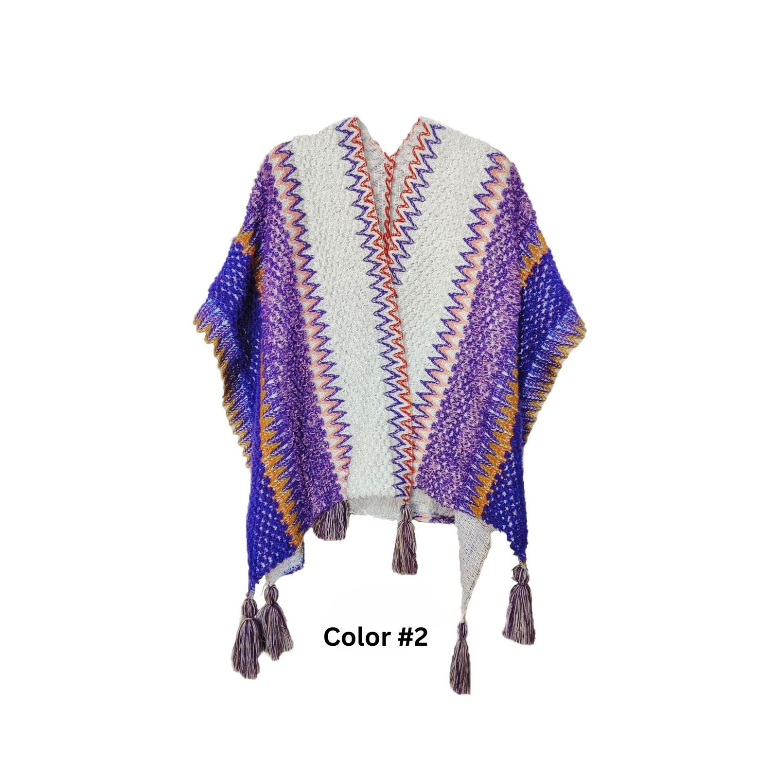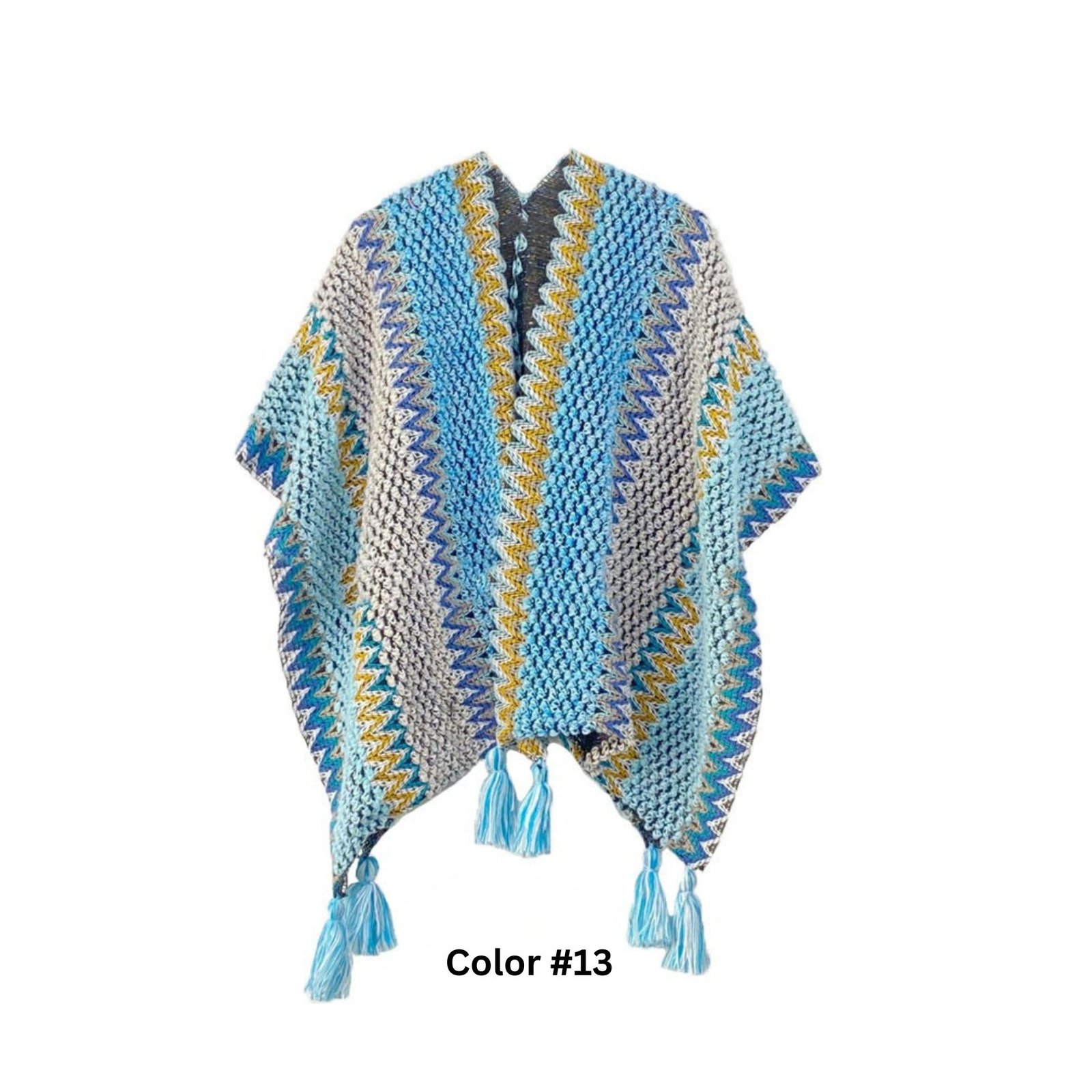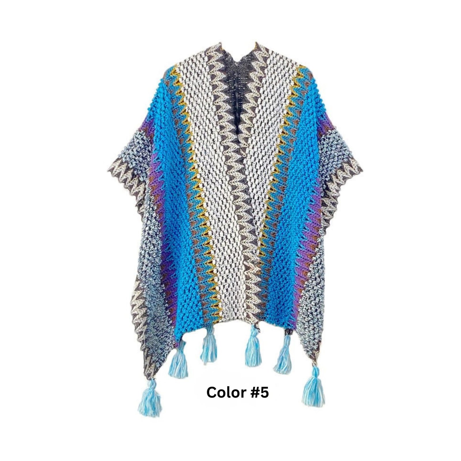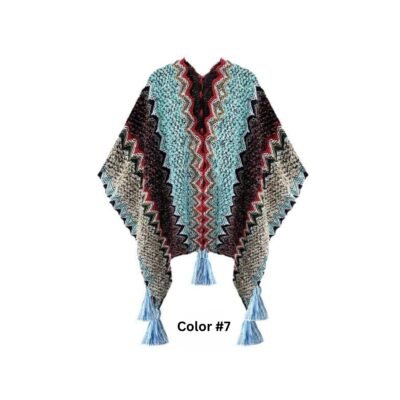Knitted Multi Color Poncho Shawls with Tassel