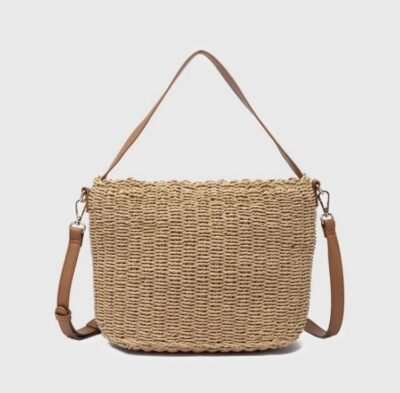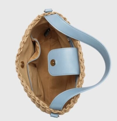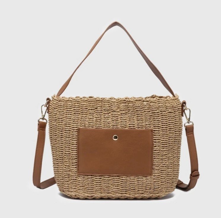 Embrace the sweetness of the season with this adorable mini tote bucket bag composed of woven straw. Featuring luxurious vegan leather detailing to bring both style and durability to your beach or picnic outfits.