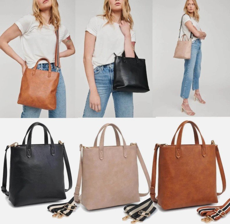 Vegan Leather Crossbody Tote Bag
