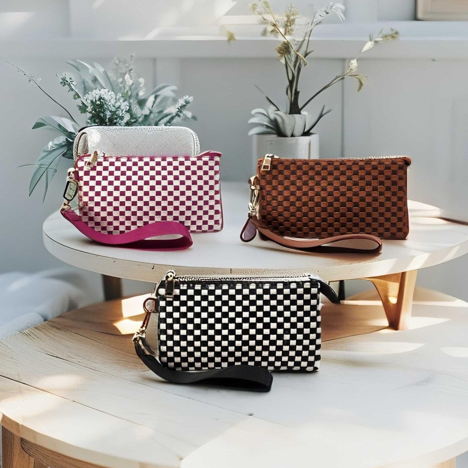 Woven Clutch Wristlet with Detachable Strap with Key Ring